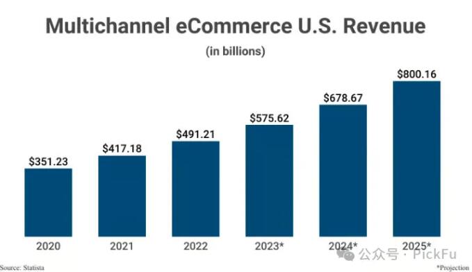 事實上,正如以下圖表所示,預計到2025年底,多渠道市場規模將超過8000億美元。
