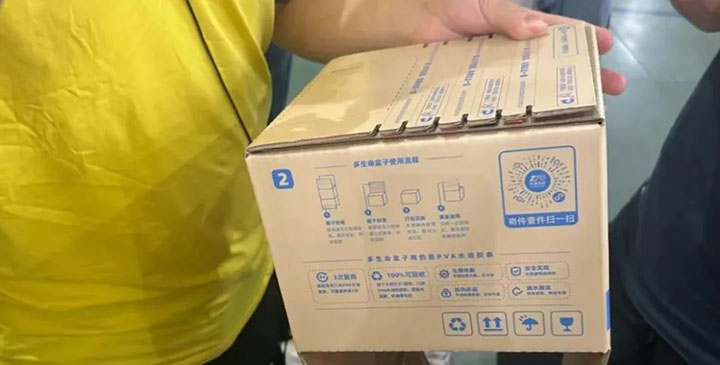 《條例》正式施行在即,中通云倉正在嘗試使用一款名叫“多生命盒子”的環保紙箱,100%可回收,同時,紙箱帶有3對PVA水溶膠條,不需要用膠帶,水溶即可粘貼,可循環使用三次,“適用于逆向物流場景,方便顧客退換貨?!敝型ㄔ苽}市場品牌部負責人徐永貴介紹道。